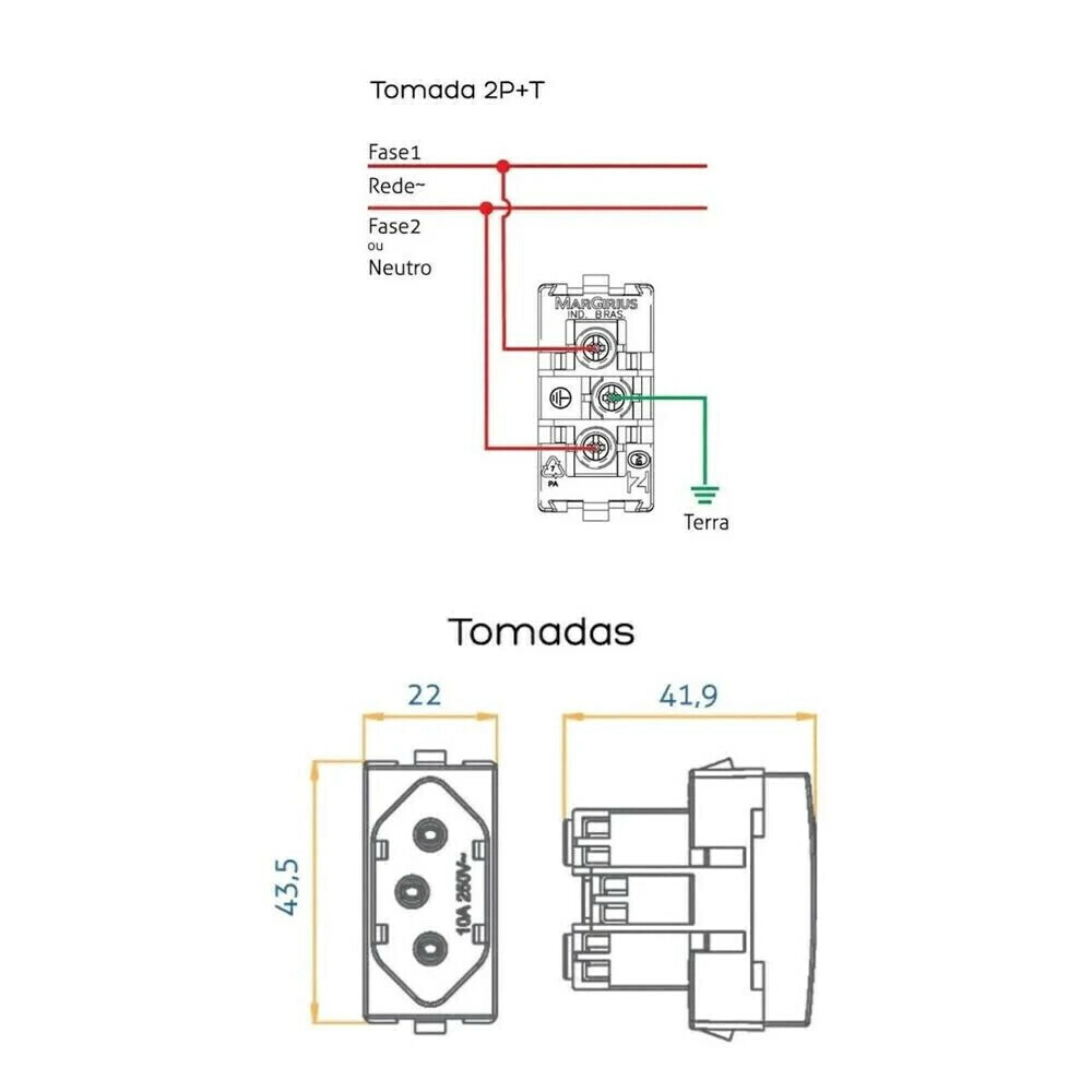 Kit 10 Modulos Tomada 10A 3 Pinos Fame Evidence