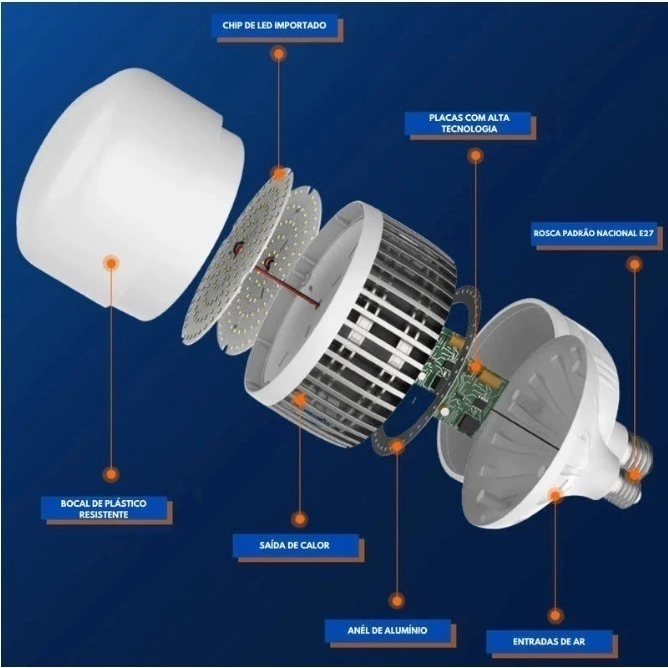 As lâmpadas LED de Alta Potência são perfeitas para aplicação em áreas grandes, com vários m². Devido a sua alta potência, ela possui uma iluminação ampla, de longo alcance.