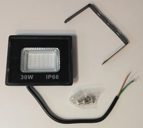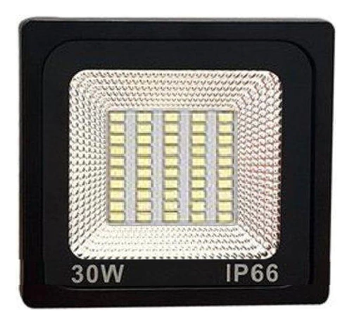 Potência: 30W Modelo: LED Material: Alumínio Temperatura de cor: Luz Azul Luminosidade: 2700LM Vida útil: 20.000 horas Voltagem: 85V - 265V (Bivolt) Frequência: 50/60 Hz Temperatura de operação: -10ºC a 50ºC Proteção: IP66 (à prova de poeira e protegido contra jato potente de água) *Não aceita dimerização*