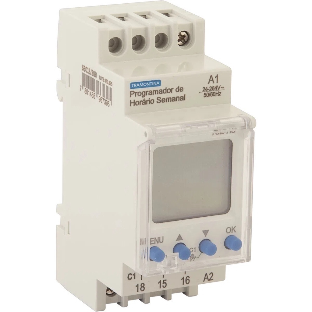 Se você busca um item para lhe automatizar a iluminação de ambientes, irrigação de jardins e outras necessidades em suas aplicações comerciais, residenciais e industriais, com certeza é relé temporizador Tramontina programador de horário semanal 24-264 V AC/DC 16 A AC-1. Ele possui memória de até 52 programas, onde você pode programar horário e dia da semana para o acionamento. O relé ainda possui display LCD para facilitar a programação e bateria interna que evita a perda da programação ou do ajuste do relógio numa falta de energia elétrica. Escolha Tramontina e automatize seus equipamentos com muito mais qualidade!