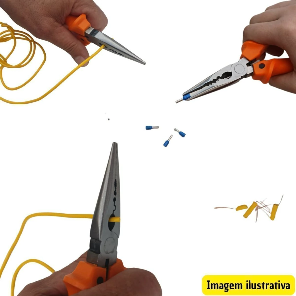 Diferenciais: Bico longo e estreito para alcançar locais de difícil acesso, corte preciso e pegada firme