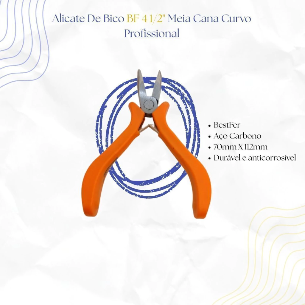 O Alicate de Bico Meia Cana Curvo BF 4 1/2" Profissional é a ferramenta ideal para trabalhos que exigem precisão em locais de difícil acesso. Produzido em aço carbono de alta resistência, possui bico curvo e estreito que facilita manobras em ângulos, cortes e torções de fios. Seu cabo ergonômico com revestimento em PVC garante maior conforto, segurança e firmeza no uso. Ferramenta essencial para eletricistas, técnicos, artesãos e hobbystas.