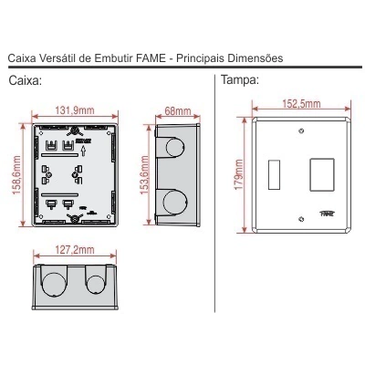 ACOMPANHA O PRODUTO: 01 Caixa Versatil com 2 Tomadas e Encaixe de Disjuntor DIMENSÃO DO PRODUTO: Largura: 7,5 cm Comprimento: 15 cm Altura: 18 cm