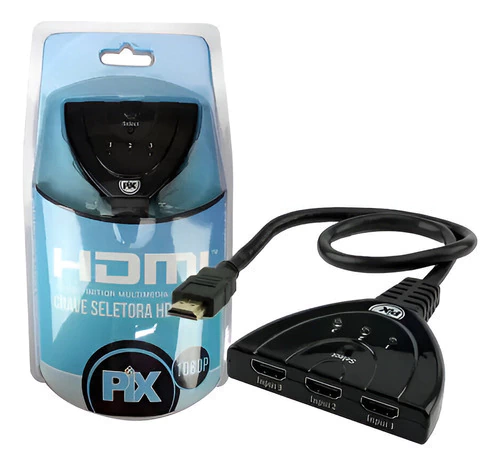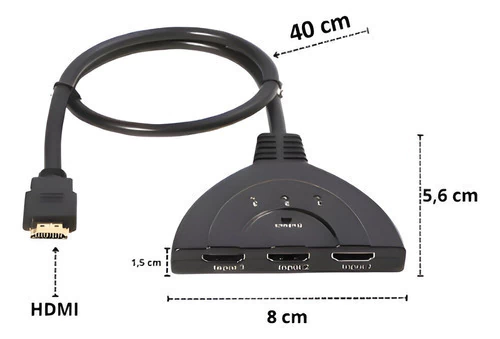 Chave Seletora HDMI 3x1 - 3 Entradas e 1 Saída - Alta Qualidade e Facilidade de Uso A Chave Seletora HDMI 3x1 é a solução ideal para quem precisa conectar múltiplos dispositivos HDMI a uma única entrada de TV ou monitor. Com 3 entradas e 1 saída, esta chave seletora permite alternar facilmente entre consoles de jogos, players de mídia, computadores e outros dispositivos HDMI sem a necessidade de desconectar e reconectar cabos constantemente. Compacta e eficiente, é perfeita para otimizar o uso dos seus aparelhos eletrônicos. Para conectar até 3 equipamentos (Video game, Blu Ray, DVD, Receptor de tv a cabo, entre outros) à sua TV ou monitor HD. Especificações Técnicas: Modelo: HDMI 3x1 Entradas: 3 portas HDMI Saída: 1 porta HDMI Resoluções Suportadas: Até 4K @ 30Hz, 1080p @ 60Hz, 3D Compatibilidade: Compatível com todos os dispositivos HDMI (TVs, monitores, computadores, consoles de jogos, Blu-ray players, etc.) Conectividade: Suporta HDCP 1.4, Deep Color, e áudio de alta definição Controle: Botão manual para seleção de entrada Material: Plástico ABS resistente Alimentação: Não requer fonte de alimentação externa (autoalimentado via portas HDMI) Conteúdo da Embalagem: 01 Chave Seletora 3x1 Tamanho do Cabo: 40 cm ***ENVIO IMEDIATO EM HORÁRIO COMERCIAL***