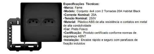 Conjunto 4x4 2 Tomadas 20A Fame Habitat Black Preto Fosco