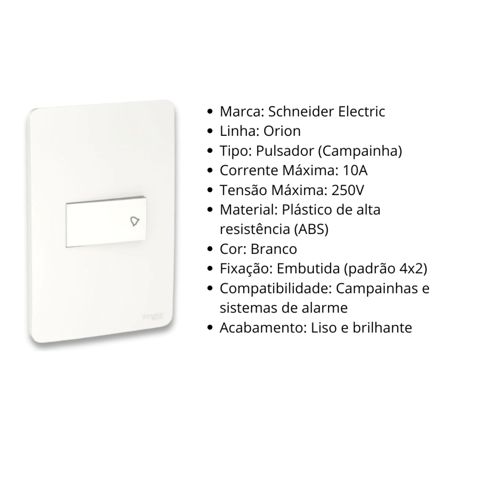 Conjunto Pulsador Campainha Schneider Orion 10A – Design, Resistência e Eficiência