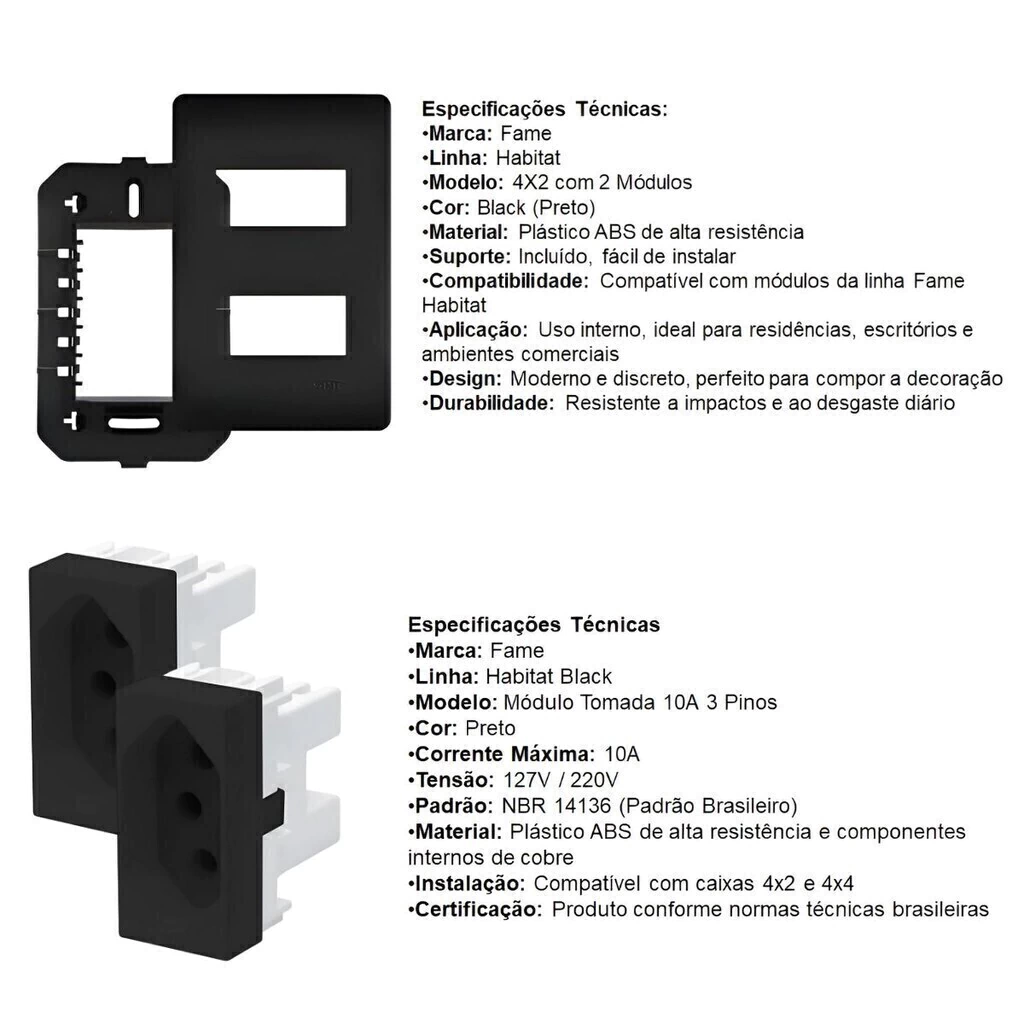 Conjunto Tomada Dupla 10A Fame Habitat Black – Estilo, Segurança e Sofisticação