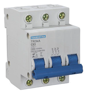 Com o disjuntor din tripolar de 63a curva c tramontina você irá garantir alta qualidade para seus projetos elétricos. Desenvolvido para garantir a segurança da instalação, ele preserva a rede elétrica e seus equipamentos em caso de sobrecarga ou curto-circuito. Ele é instalado no quadro de distribuição e dimensionado de acordo com a potência dos equipamentos, números de tomadas e quantidade de lâmpadas. Sua montagem é individual, sem a necessidade de desmontar o barramento, o que otimiza o tempo de instalação. Um item com a qualidade tramontina, que você já conhece e confia! Recomendações de uso: a instalação e segurança: é importante que o produto seja instalado por profissional habilitado. Antes de instalar, desligue a energia elétrica.