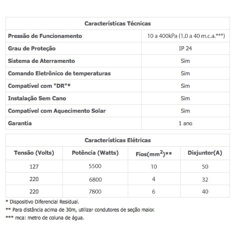 Acompanhando as tendências mundiais de arquitetura e design, a linha acqua ultra apresenta acabamento moderno e inovador, design compacto, ultrafino. A linha acqua ultra conta com a exclusiva resistência loren ultra, a primeira resistência plana do mercado. Trata-se de um desenvolvimento com mais de cinco anos de estudos, que garante alta performance e longa duração. O chuveiro acqua wave ultra traz um banho diferenciado e inesquecível. Tecnologia press plus:jatos de alta performance mesmo com baixa pressão. Exclusiva resistência loren ultra: longa duração em comparação as resistências comuns. Resistência de troca rápida loren ultra: exclusivo cartucho que garante uma troca rápida e segura. Comando eletrônico: permite a escolha gradual e precisa da temperatura. Haste de controle de temperaturas: controle de temperaturas ao alcance das mãos (uso opcional). Fácil instalação: em poucos passos a ducha é instalada ou removida. D.r.i. - dispositivo de regulagem de inclinação. Ducha manual com design exclusivo. Compatível com aquecimento solar e outros sistemas de aquecimento. Especificações: Marca: Lorenzetti Linha: Acqua wave Forma: Quadrado Material: Plásticos de engenharia e ligas de metal. Tipo de acabamento: Branco Tipo de configuração: Chuva Tipo de instalação: Elétrica/Hidráulica Cor: Branco Eficiência: F Certificação: IPT - Instituto de Pesquisas Tecnológicas Tamanho: Pequeno Acabamento: Branco Tipodefontedeenergia: Energia elétrica Voltagem: 220 Volts Potênciaemwatts: 7800 Usos específicos doproduto: Aquecimento de água Peso: 1.88 Quilogramas