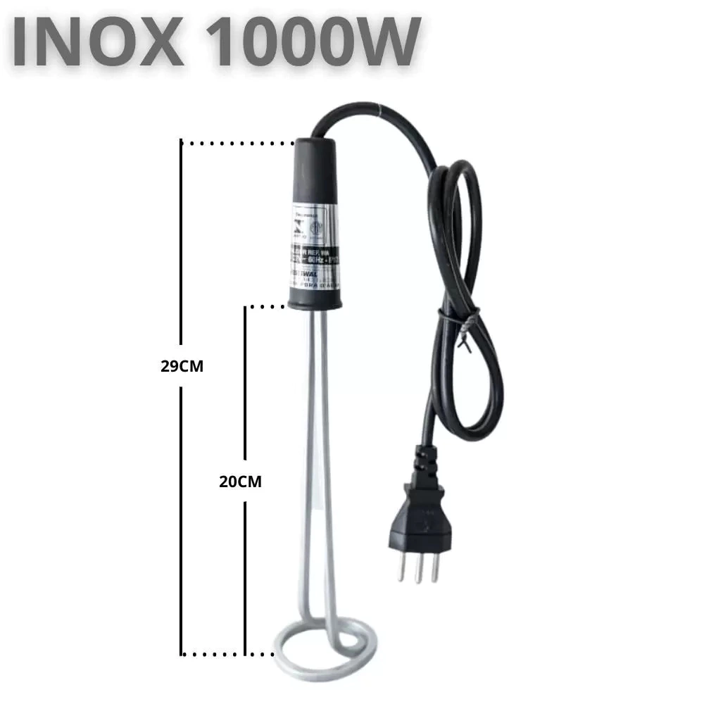 Ebulidor mergulhao resiswal de inox 1000W 127V Cabo em pvc resistente a alta temperatura. Aprovado pelo inmetro. Para uso em cozinha ou em outras utilizações que necessitem de aquecimento ou fervura de líquidos. Cozinhe ovos e legumes, aqueça chá, café, leite e etc. Como utilizar o seu ebulidor elétrico para aquecer água: deixe o recipiente em local firme e seguro, (use recipientes de vidro, louça ou alumínio. Não utilize recipientes de plásticos) Coloque a parte metálica do aquecedor verticalmente na água Atenção: nunca ligue o aquecedor fora da água. Verifique se a voltagem (127v) do aparelho é igual a da rede elétrica de sua residência. Conecte na tomada. Quando a água estiver aquecida, primeiro desconecte o cabo da tomada da rede elétrica e depois retire o aquecedor do recipiente. Cuidado, pois o seu ebulidor elétrico estará quente. Segure cuidadosamente pelo cabo plástico, retirando do recipiente. Coloque o aquecedor de água quente em local seguro, longe de produtos inflamáveis e objetos que possam ser danificados pelo calor. ESPECIFICAÇÕES: Marca: Resiswal Material: Inox Potência: 1000W Tensão: 127V Frequência: 60Hz Amperagem: 7,87A Consumo: 1,0 Kw/h Classificação: IPX7
