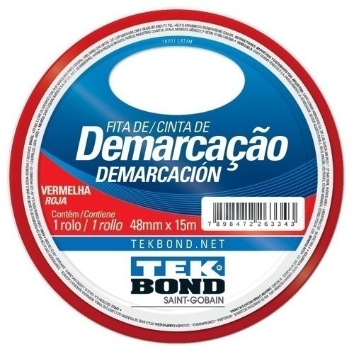 ESPECIFICAÇÕES: Fabricado: PVC revestido com borracha adesiva Largura da fita: 48 mm Comprimento da fita: 15 mt Cor: Vermelho Marca: Tekbond