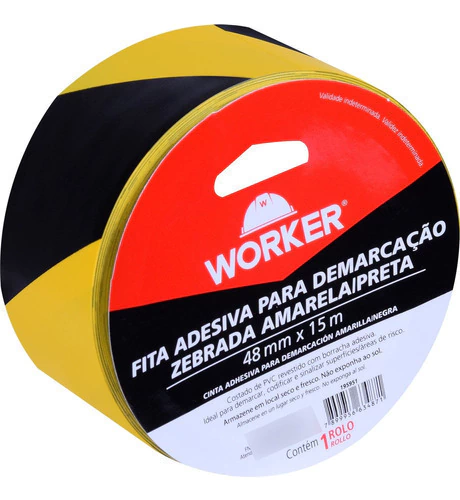 ESPECIFICAÇÕES: Fabricado: PVC revestido com borracha adesiva Largura da fita: 48mm Comprimento da fita: 30m Cor: Zebrada Marca: Worker