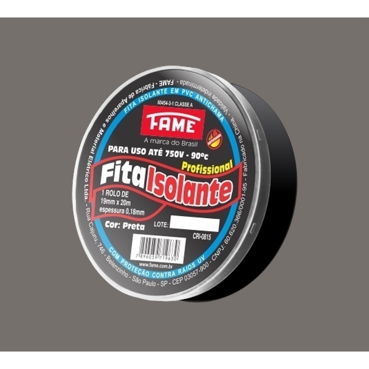 A fita isolante fame 19x18mm 20 metros preto é feita em filme de pvc antichama, é dotada de adesivo a base de borracha sensível à pressão. E atende a todos os requisitos da norma nm60454-3-1 classe a. Indicada para instalações elétricas de baixa e média tensão. Marca: fame Cor: preto Para uso até 750v, à temperatura máxima de 90°c. Antichama. Com proteção contra raios uv. Para uso até 750v, à temperatura máxima de 90°c. Antichama. Com proteção contra raios uv.