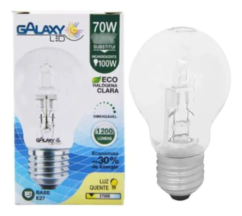 Com o formato clássico, semelhante às incandescentes convencionais, porém com melhor eficiência energética, a eco halógena oferece excelente índice de reprodução de cor. Com índice de reprodução de cor de 100%, proporcionam uma iluminação com qualidade e muito brilho.