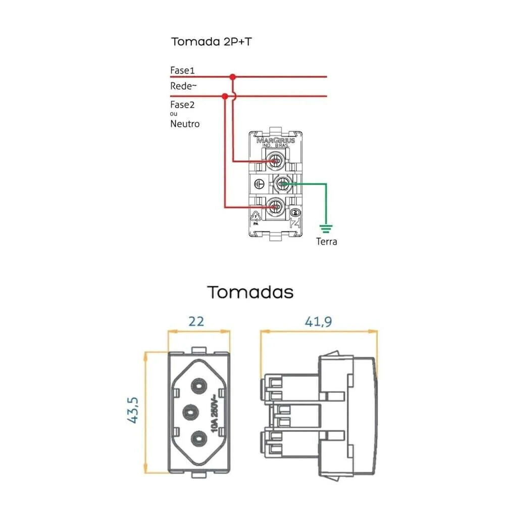 Kit 10 Modulos Tomada 10A 3 Pinos Fame Evidence