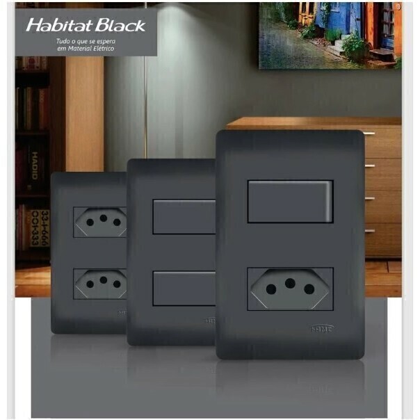 Kit 10 Tomadas Duplas 20A Fame Habitat Black Preto Fosco