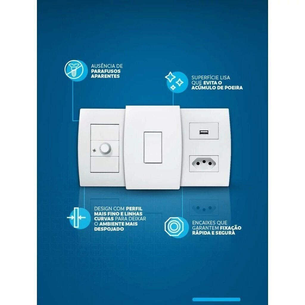 Interruptor Paralelo. Design clássico e clean que combinam com o seu estilo. Disponível na cor branco. Corrente de 10A e tensão 250V~. Produzido em material termorplástico de alta performance, com aditivo anti UV e anti poeira que auxilia na conservação do produto.