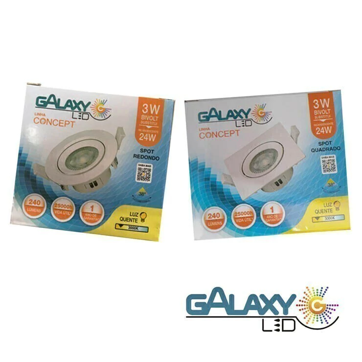 Kit 20 Spots Quadrado de Embutir Galaxy 3W 3000K Bivolt: Iluminação Moderna e Eficiente