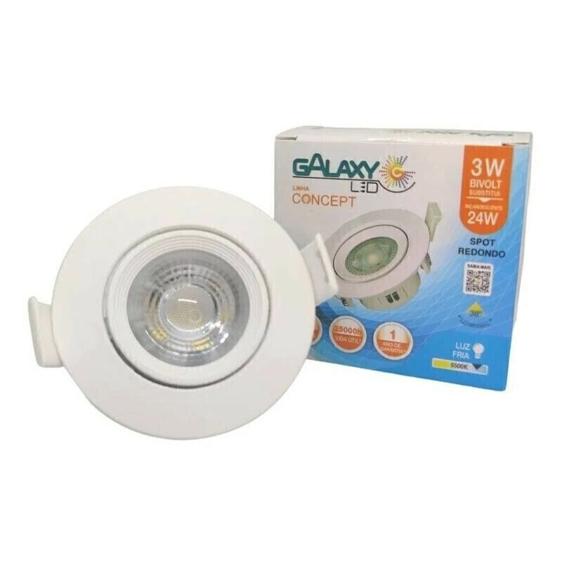 Kit 20 Spots LED Redondo de Embutir Galaxy 3W Bivolt: Iluminação Moderna e Eficiente