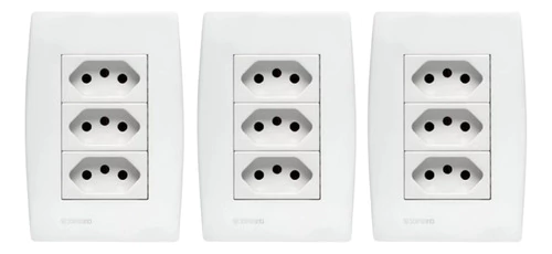 Kit 3 Conjuntos Tomadas Triplas 10A 3 Pinos Soprano Siemens Ilus