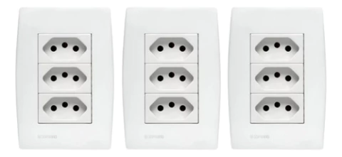 Adquira o Kit 3 Conjuntos Tomadas Triplas 10A 3 Pinos Soprano Siemens Ilus e tenha tranquilidade em sua instalação elétrica!