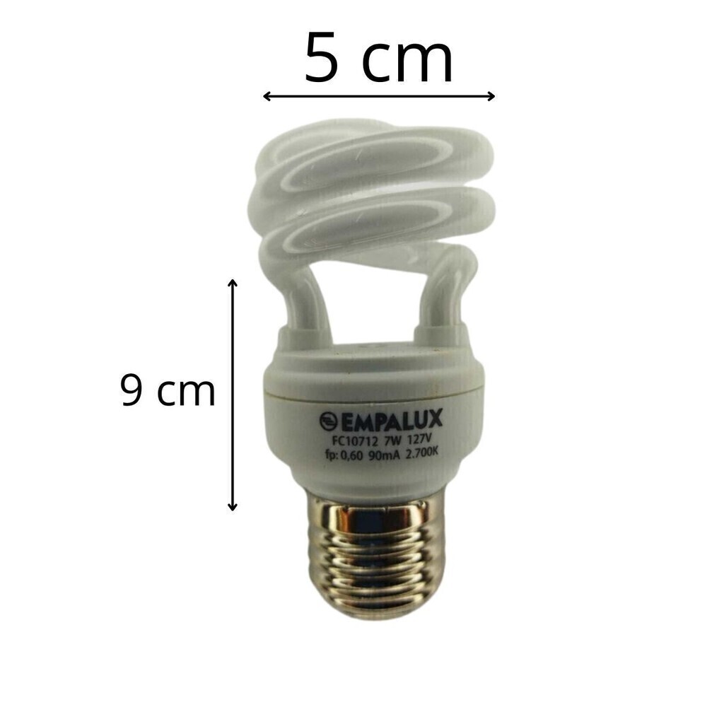 lâmpada empalux 7w, lâmpada espiral t2 127v, lâmpada compacta 2700k, lâmpada econômica empalux, lâmpada e27 luz amarela, kit lâmpadas empalux, lâmpada fluorescente compacta 7w.