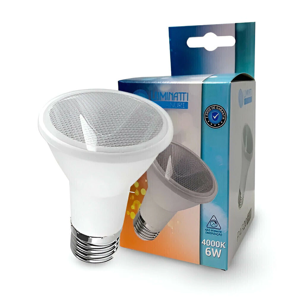 Lâmpada LED, LED PAR20, lâmpada E27, lâmpada 6W, lâmpada bivolt, luz branca neutra, iluminação LED, lâmpada econômica, lâmpada 4000K, lâmpada Luminatti.
