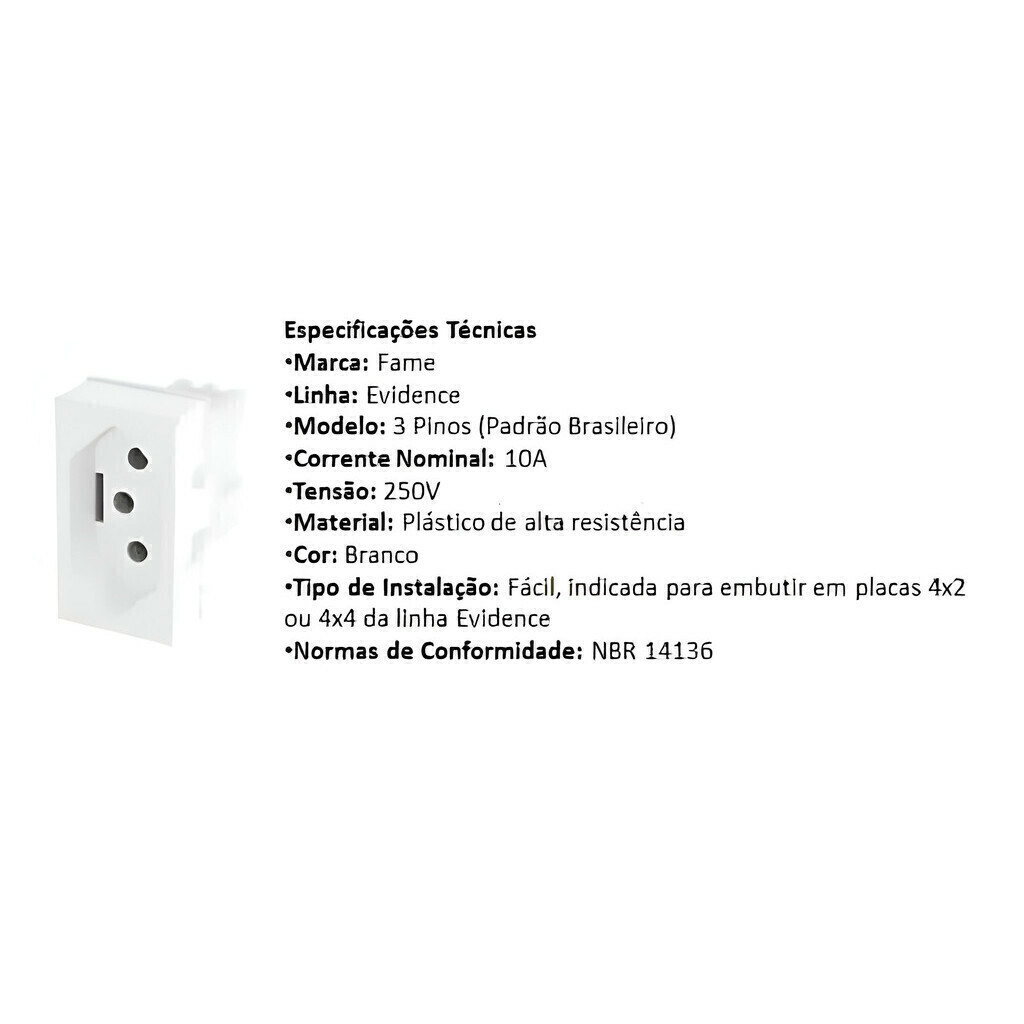 Kit 3 Modulos Tomada 10A 3 Pinos Fame Evidence