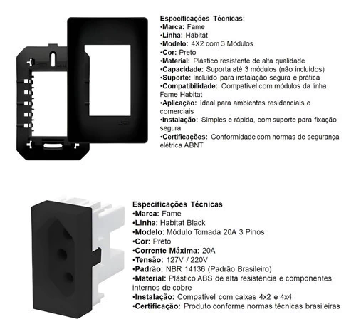 Kit 5 Conjuntos Tomadas Triplas 20A Fame Habitat Black ***PARA MAIS DE UMA UNIDADE, SOLICITE O LINK DO KIT*** Interruptores e Tomadas foram desenvolvidos privilegiando a descoberta encontrada em cada projeto. São o complemento perfeito para seu ambiente! Design clássico e clean que combina com seu estilo. Perfil mais fino com ausência de parafusos aparentes. Produzido em material termoplástico de alta performance, com aditivo anti UV e anti poeira que auxilia na conservação do produto. Monte sua casa com a linha da Fama Habitat Black! Especificações Técnicas: Marca: Fame Linha: Habitat Black Modelo: Kit 10 Conjuntos Tomadas Triplas 20A Fame Habitat Black Cor: Preto Conteúdo da Embalagem: 05 Conjuntos Tomadas Triplas 20A Fame Habitat Black Dimensões do Produto: Altura: 11,8 cm Comprimento: 7,5 cm ***ENVIO IMEDIATO EM HORÁRIO COMERCIAL***
