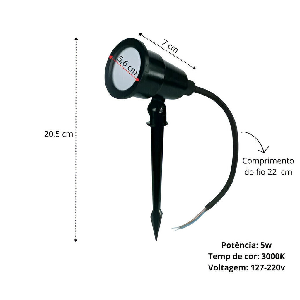 Kit 5 Espetos Jardim Maxxy IP65 5W Bivolt 3000K Branco Quente