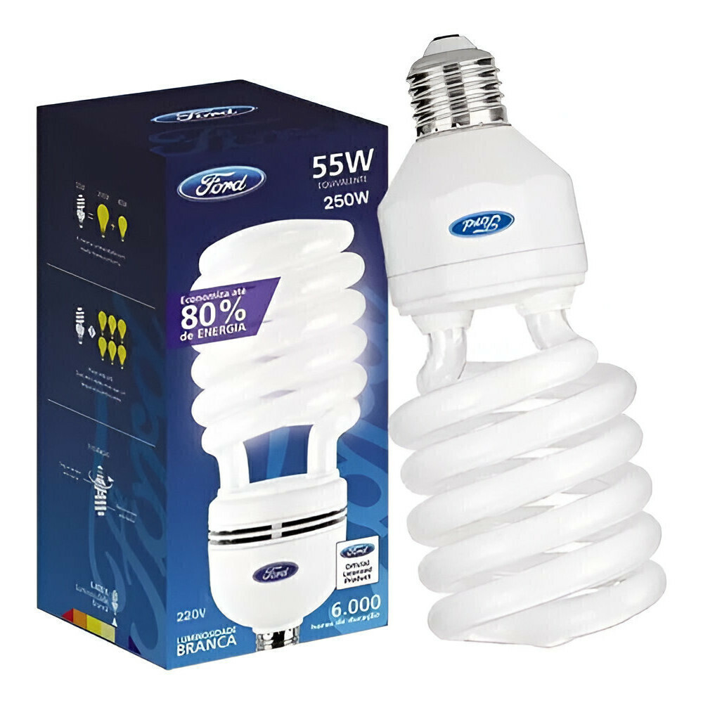 Kit 5 Lampada Fluorescente Espiral Ford E27 55W 220V 6400K: Iluminação Eficiente e Brilhante