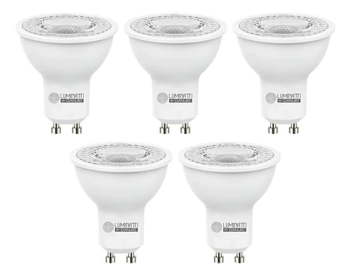 Kit 5 Lâmpada LED Dicróica MR16 Luminatti GU10 6,5W Bivolt 3000K: Iluminação Aconchegante e Eficiente