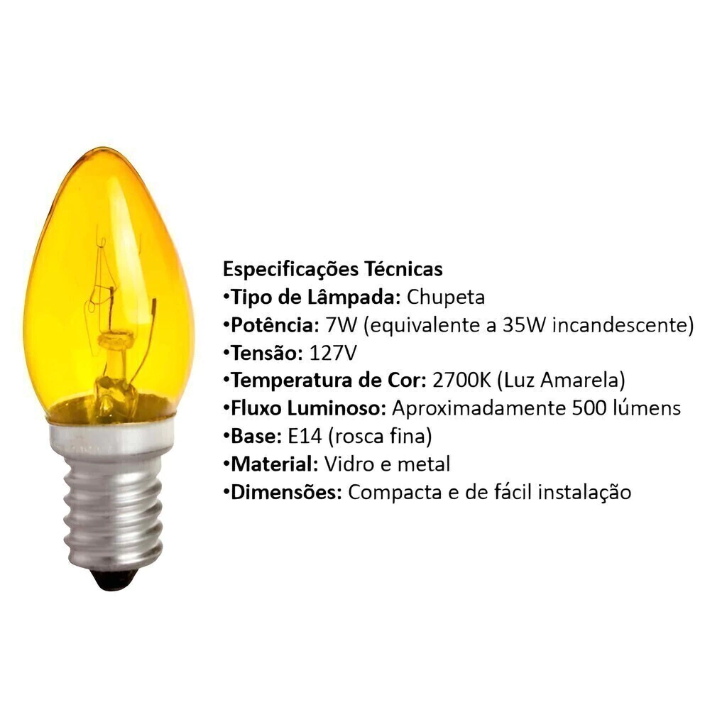 Com 7W de potência, estas lâmpadas fornecem uma luz amarela suave, garantindo economia de energia sem abrir mão do charme e do conforto visual.