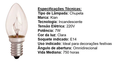 lâmpada chupeta kian, lâmpada e14 clara, lâmpada 7w 220v, lâmpada decorativa, lâmpada incandescente clara, lâmpada para festas, iluminação decorativa clara