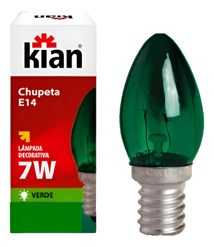 Lâmpada Incandescente Festiva, Lâmpada Verde E14, Lâmpada Chupeta Kian 7W, Lâmpada para Festas E14, Iluminação Festiva Incandescente, Lâmpada 220V Verde, Luz Clara Festiva, Lâmpada Incandescente para Eventos, Lâmpada Decorativa E14.