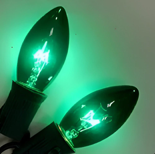 Com sua base E14 e potência de 7W, esta lâmpada incandescente proporciona uma luz verde suave que transforma qualquer espaço em um local festivo e convidativo.