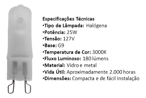 03 Lâmpadas Halógenas Kian G9 40W 127V Fosca