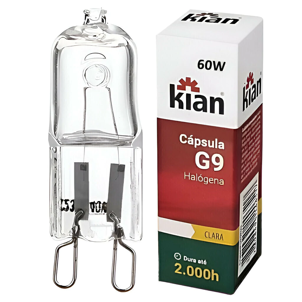 Especificações Técnicas: Marca: Kian Modelo: G9 Potência: 40W Tensão: 127V (Não é bivolt) Base: G9 Tipo de Luz: Clara Fluxo Luminoso: 380lm Temperatura de Cor: 3000K (Branco Quente) Vida Útil: Aproximadamente 2.000 horas Material: Vidro Certificação: INMETRO Garantia: 90 dias contra defeito de fabricação contados a partir da emissão do cupom fiscal do consumidor.