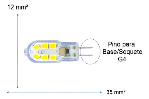 As lâmpadas Led G4 são muito usadas, isso porque possuem uma grande economia de energia em até 90% além de uma maior durabilidade de horas de uso. A lâmpada é revestida em plástico o que a torna resistente a impactos e seus leds são posicionados de forma que a luz seja emitida em todas as direções, iluminando o ambiente em 360º, criando um efeito luminoso incrível. Podem ser usadas em lustres, pendentes, arandelas, etc.