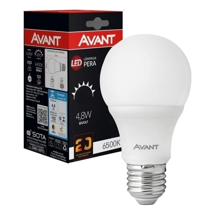 ***TODOS OS PRODUTOS SÃO RIGOROSAMENTE TESTADOS ANTES DO ENVIO*** Ilumine com estilo e economia. Adquira agora a Lâmpada LED Pera Avant E27 4,8W e transforme seus ambientes com luz de qualidade!
