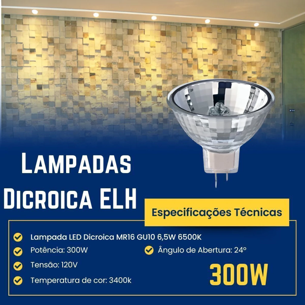 Lâmpada Dicroica Especial 120V 300W – Iluminação de Alta Precisão para Aparelhos Odontológicos e Protéticos
