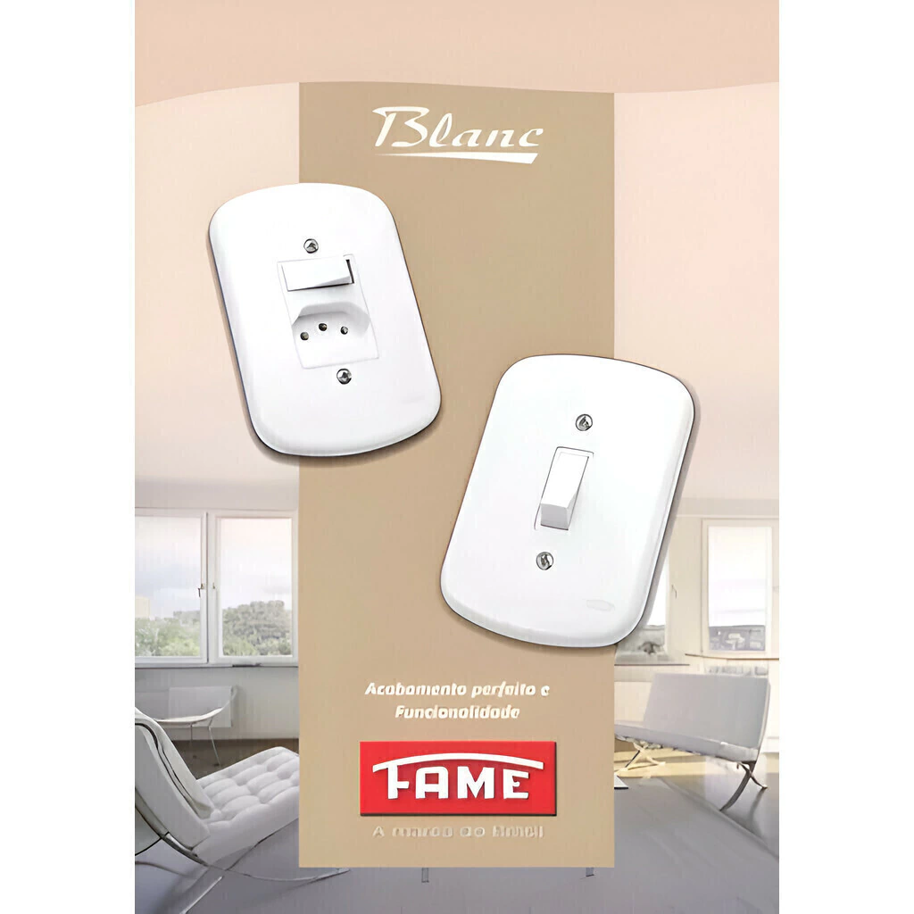 Modulo de 2 Interruptores paralelos 10a fame blanc A série blanc fame, traz a sofisticação que seu ambiente pede na medida exata. Tratamento anti u.v.a e u. V.b.: maior solidez e resistência a luz. Dimensões maiores: melhor cobertura e acabamento. Especificações: Marca: Fame Linha: Blanc Material: Termoplástico Cor: Branco Acabamento: brilhante Amperagem: 10a