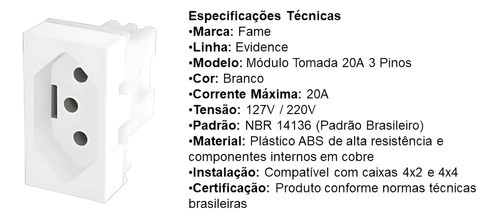 Modulo de tomada 20a 3 pinos fame evidence