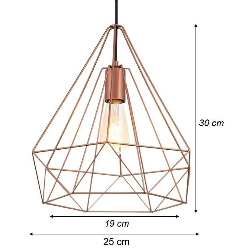 Pendente Aramado Diamante de Aro Grande Reto Cobre: Elegância e Modernidade na Iluminação Descrição: Adicione um toque de elegância e estilo contemporâneo à sua decoração com o Pendente Aramado Diamante de Aro Grande Reto na cor cobre. Com seu design único em forma de diamante e aro grande reto, este pendente aramado proporciona um visual sofisticado e moderno para qualquer ambiente. Ideal para uso em salas de jantar, cozinhas, quartos e áreas de estar, este pendente cria uma atmosfera acolhedora e charmosa. Adquira o Pendente Aramado Diamante de Aro Grande Reto Cobre e ilumine seus espaços com requinte e beleza! ***NÃO INCLUI LÂMPADA!!!***