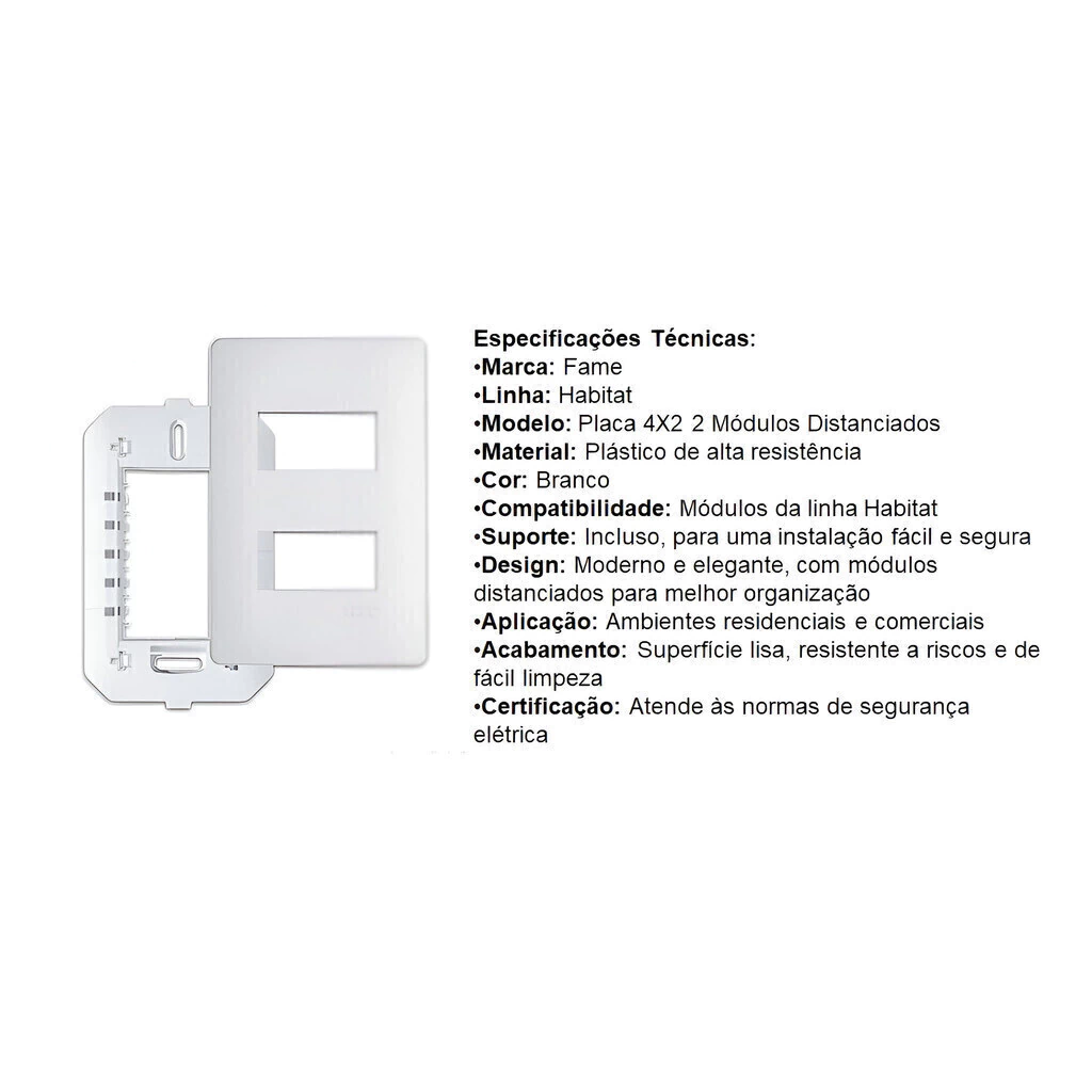 placa fame habitat, placa 4x2 branca, placa para 2 módulos distanciados, placa elétrica habitat, suporte para placa fame, placa acabamento modular, linha habitat fame.