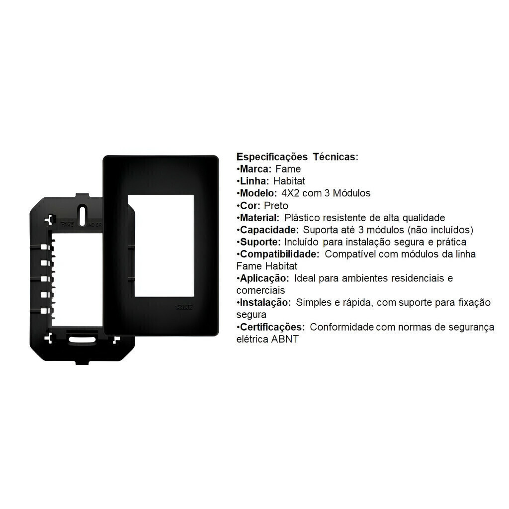 Placa 4x2 3 Modulos Fame Habitat Black Com Suporte