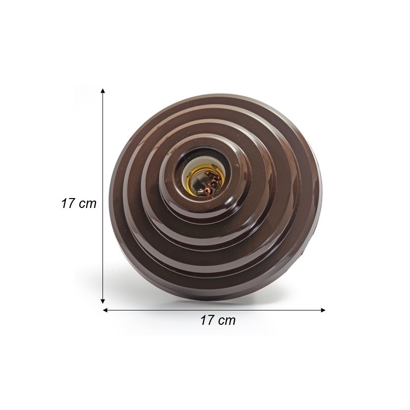Especificações Técnicas: Produto: Plafon com Aditivo ANTI-UV Formato: Redondo Instalação: Sobrepor Modelo: Gourmet Cor: Marrom Base: E27 Tensão Máxima: 250V Potência: 100W Uso: Indicado para instalação em tetos, garantindo uma iluminação central e envolvente.