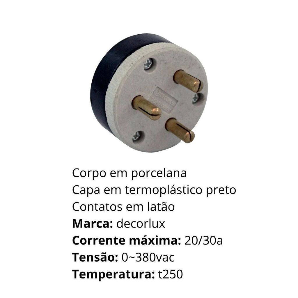 pino macho 3 polos decorlux, plug macho porcelana, conector elétrico industrial 20a, pino macho 380v, pino externo polarizado, pino de porcelana resistente, tomada industrial macho