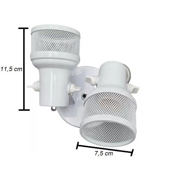 ESPECIFICAÇÕES: Modelo: Tela Tipo: 2XE27 Potência Máxima: 60W (127V ou 220V) Lâmp. Inclusas? Não Marca: JR Iluminação Cor: Branca Durável de fácil instalação e de regulagem de direcionamento de luminosidade.