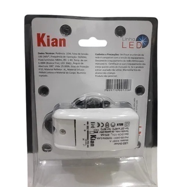 ACOMPANHA O PRODUTO: 01 Spot Led Redondo 01 Driver LED KDBF-A DIMENSÕES DO PRODUTO: Diâmetro: 9,5cm Altura: 9,5cm
